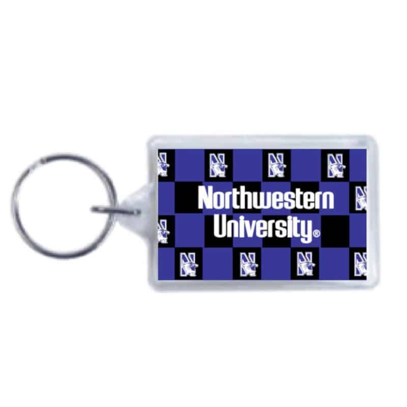 Northwestern University Wildcats Rectangular Acrylic Keychain with Checkerboard Design