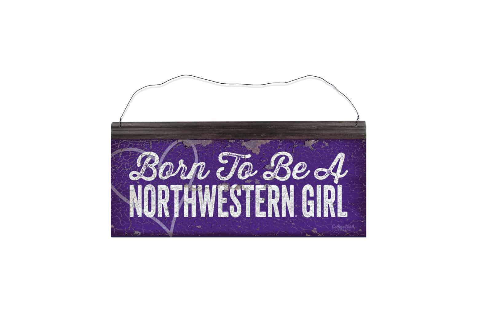 Northwestern University Wildcats Rectangular Vintage Tin Sign with “Born To Be a Northwestern Girl” Design