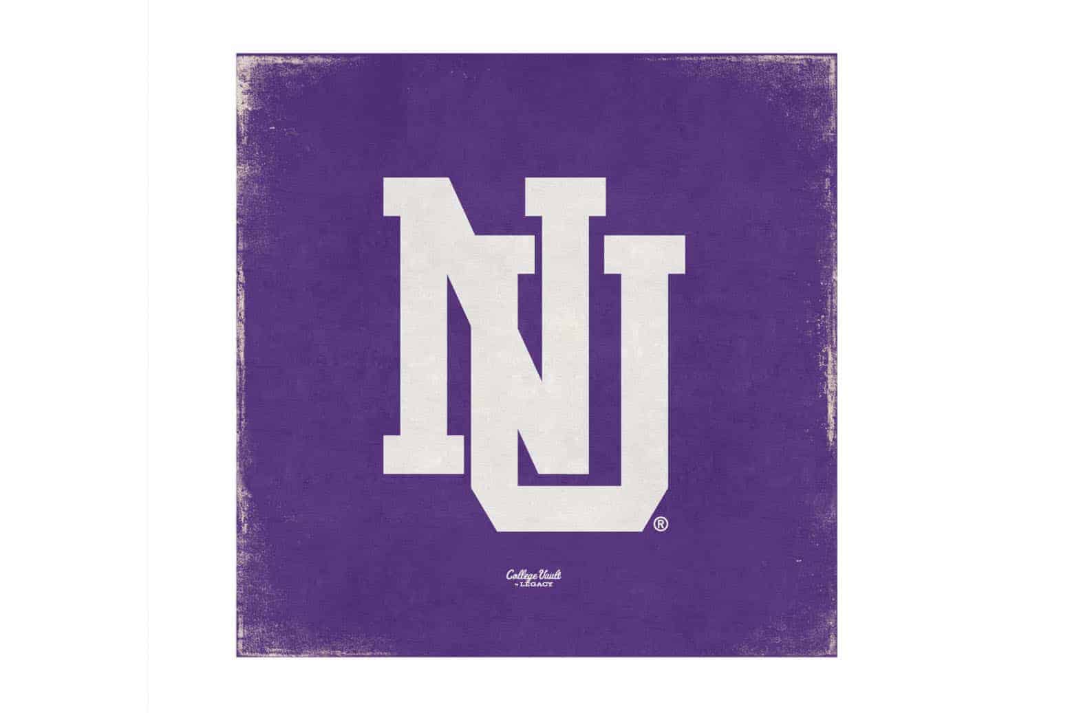 Northwestern University Wildcats Square Vintage Canvas Wall Art with Vintage Interlock NU Logo 14″X14″