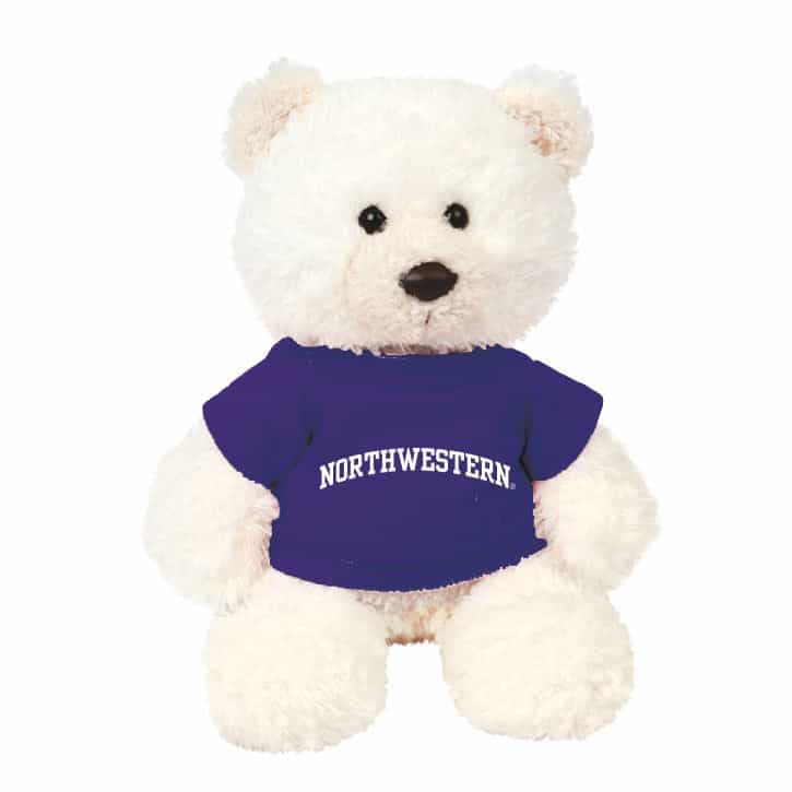 Northwestern University Wildcats Teddy Bear Baxter Cream Wearing Purple “Northwestern” Tee Shirt