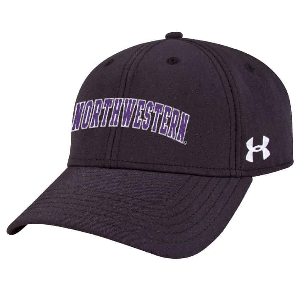 Northwestern University Wildcats Under Armour Black Adjustable Velcro-back Hat with Arched Northwestern Design