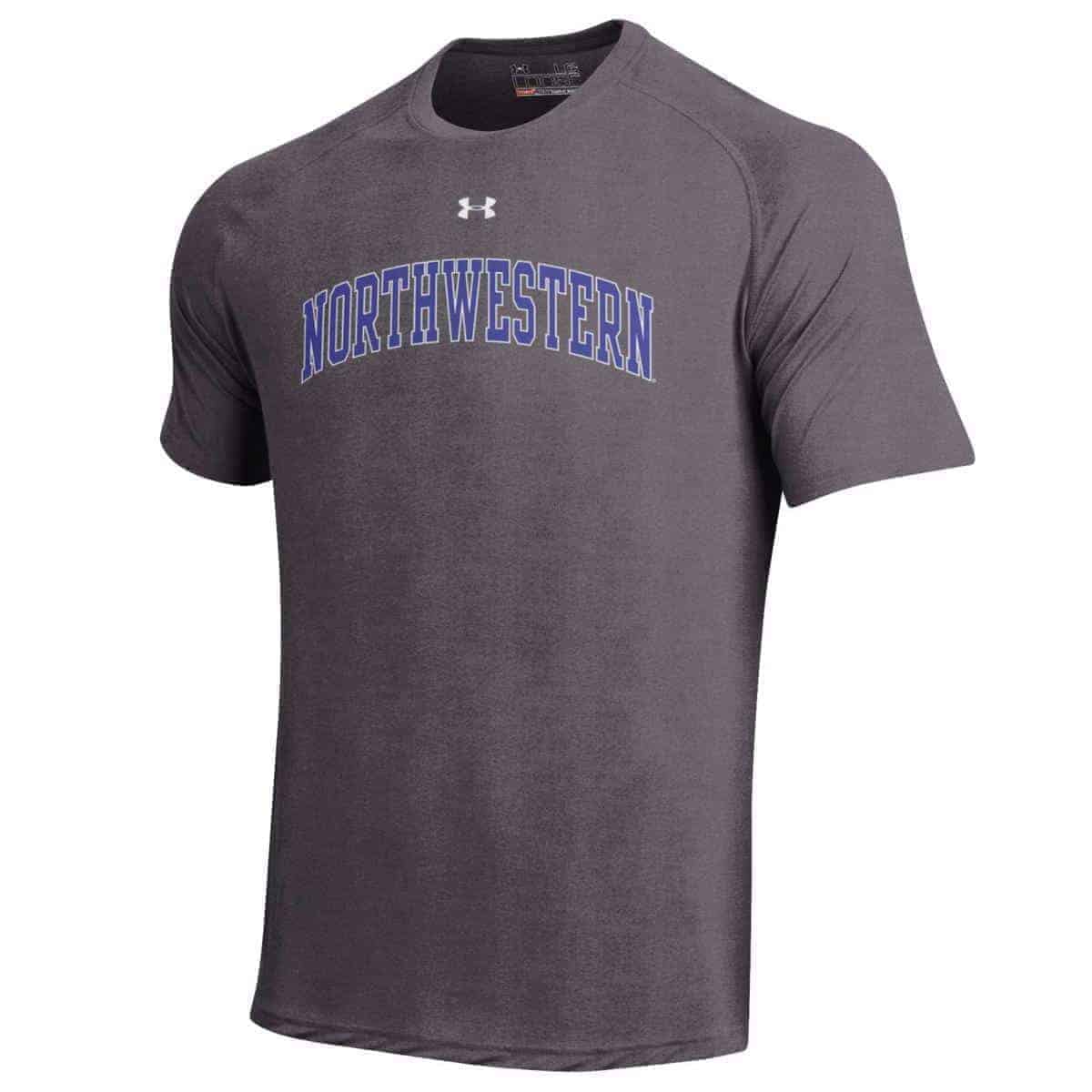 Northwestern University Wildcats Under Armour® Men’s Tech Charcoal Short-Sleeve Tee Shirt with Printed Arched Northwestern Design