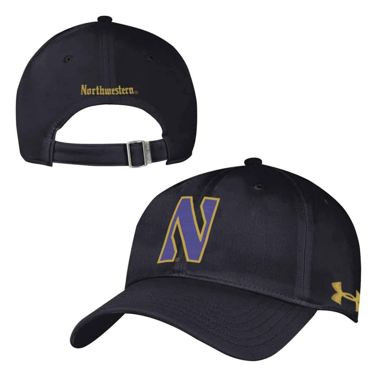 Northwestern University Wildcats Under Armour Renegade Adjustable Black Hat with Stylized N Gothic Collection Design