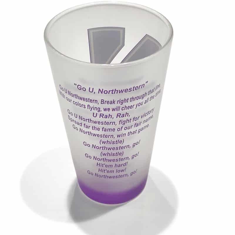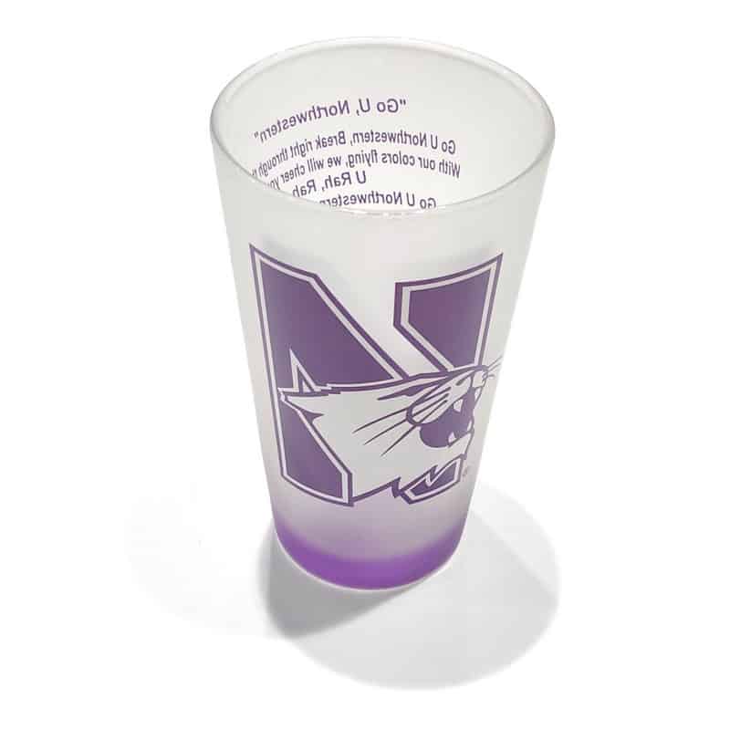 Northwestern University Wildcats White Frosted Pint of Ale Glass with N-Cat Design on one Side & Fight Song on the Other Side
