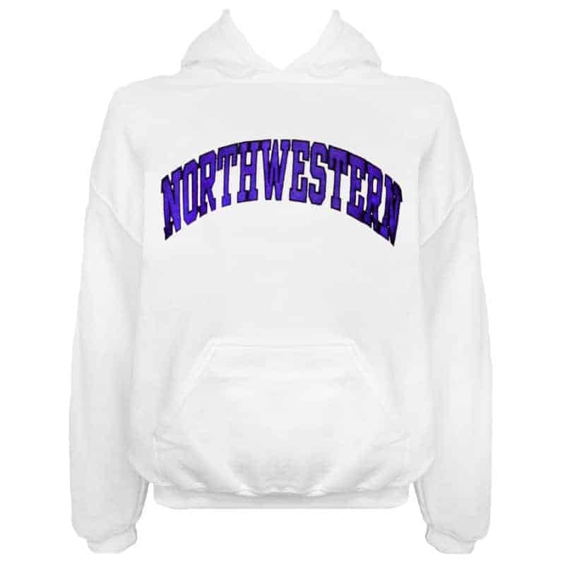 Northwestern University Wildcats White Hooded Sweatshirt with Full Chest Embroidered Northwestern Design