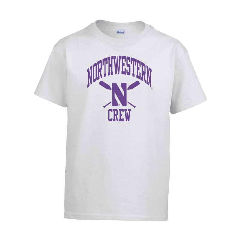 Northwestern University Wildcats White Short Sleeve Tee Shirt with Crew Design