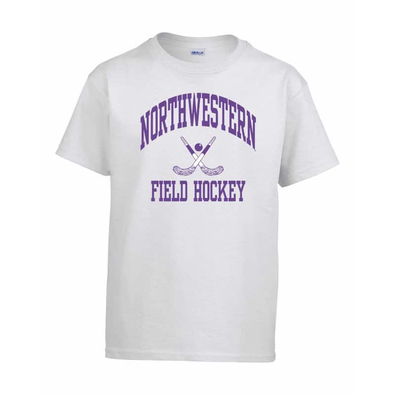 Northwestern University Wildcats White Short Sleeve Tee Shirt with Field Hockey Design