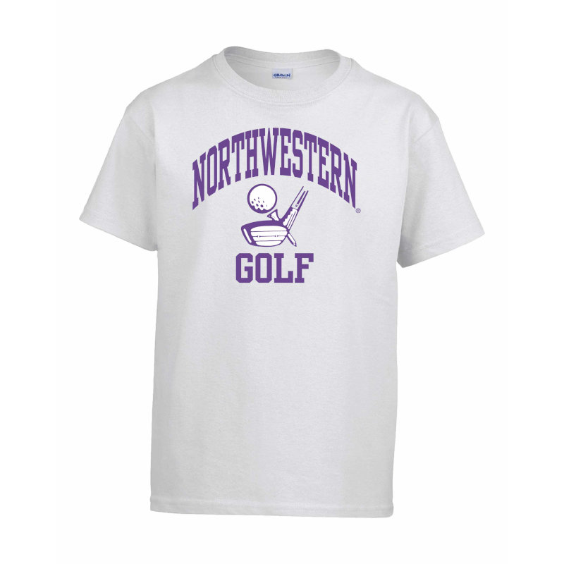 Northwestern University Wildcats White Short Sleeve Tee Shirt with Golf Design