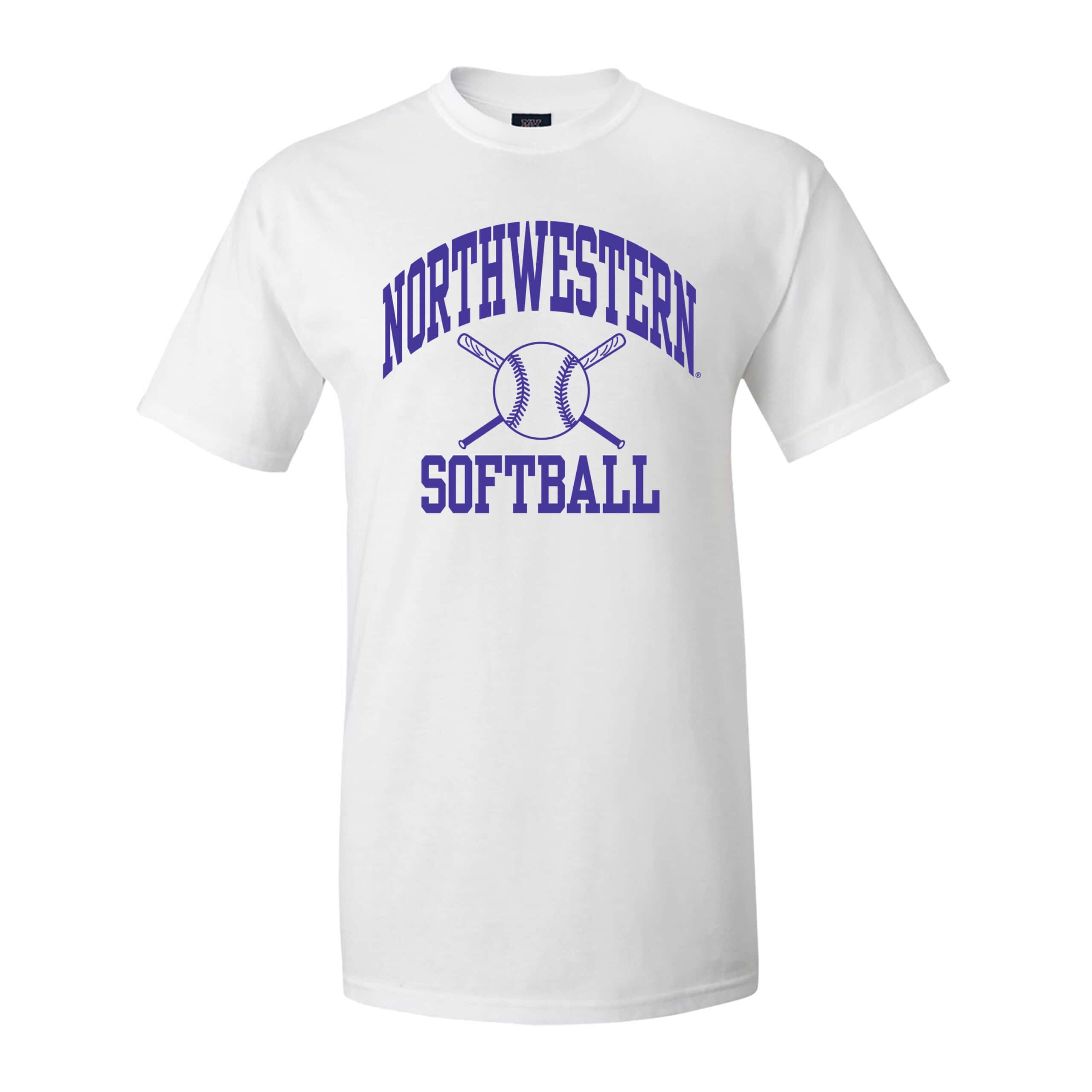 Northwestern University Wildcats White Short Sleeve Tee Shirt with Softball Design