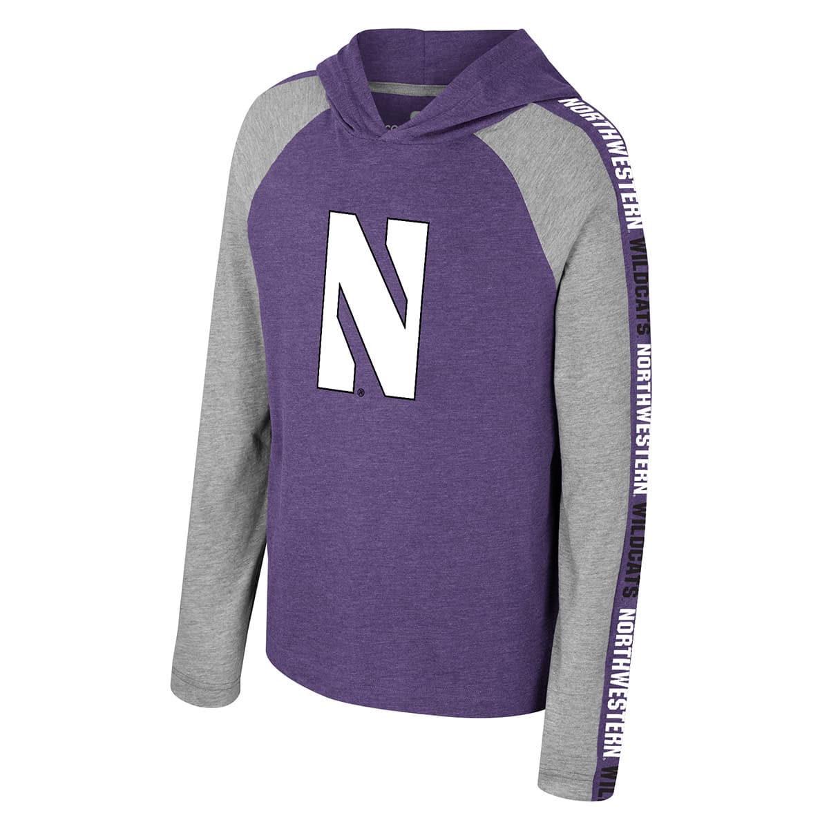 Northwestern Wildcats Youth Starfighter Purple/Heather Grey L/S Hooded Tee