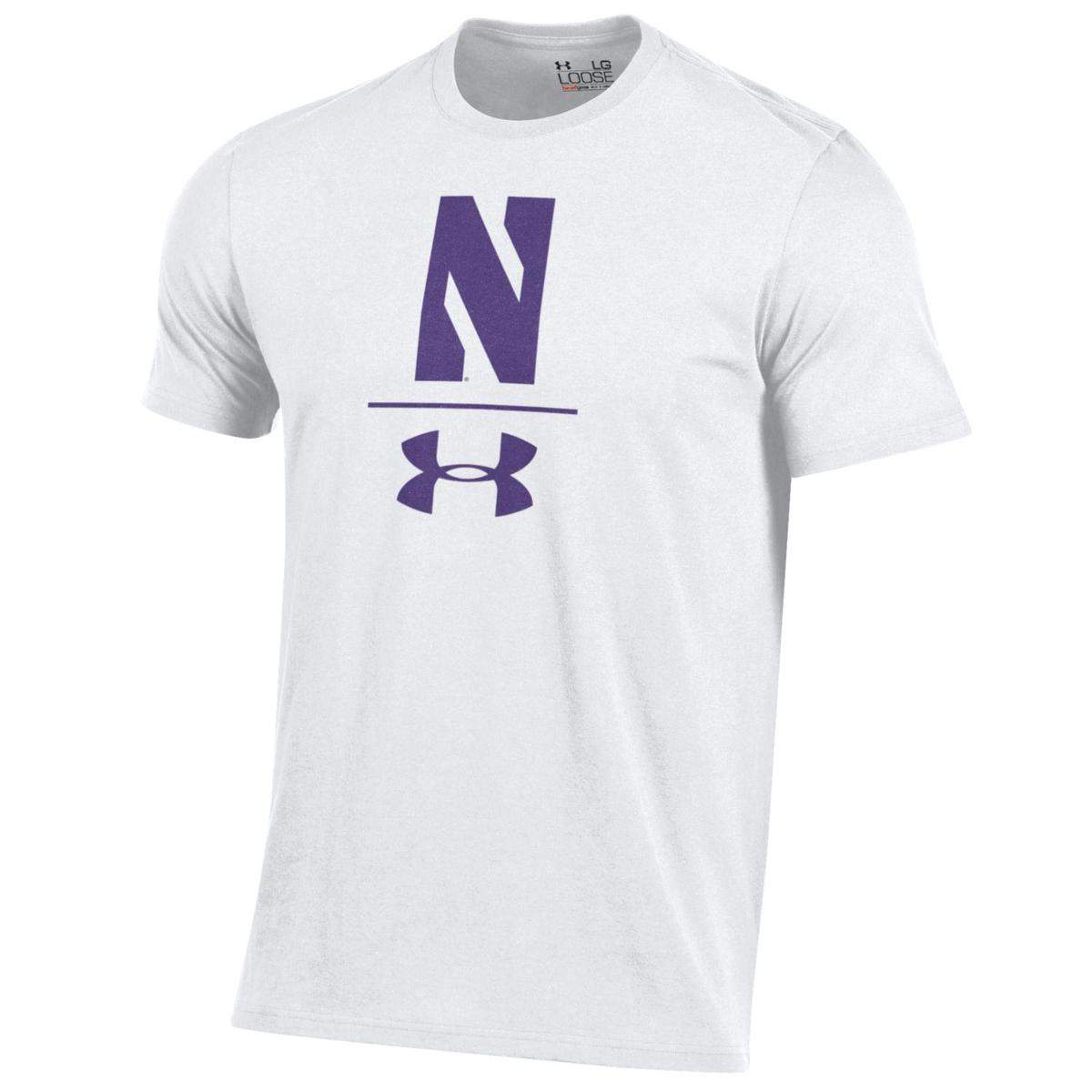 Northwestern University Wildcats Youth Under Armour Tactical Tech™ White Short Sleeve T-Shirt with Stylized Northwestern N Design
