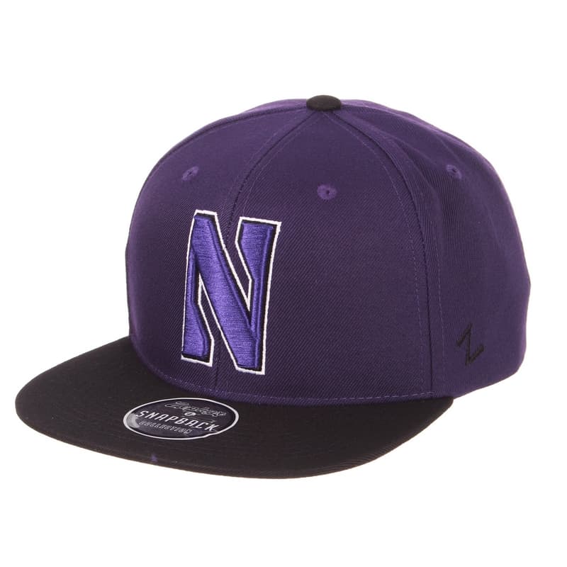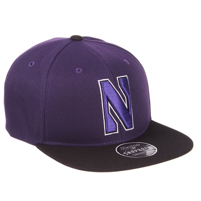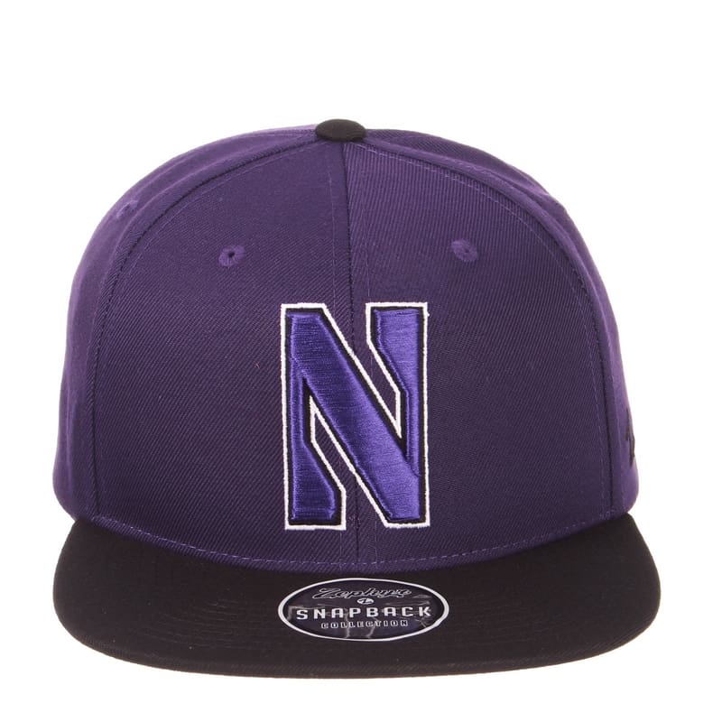 Northwestern University Wildcats Zephyr Constructed Adjustable Dark Purple/Black Flat Brim Snapback Hat with Tonal N-cat Design
