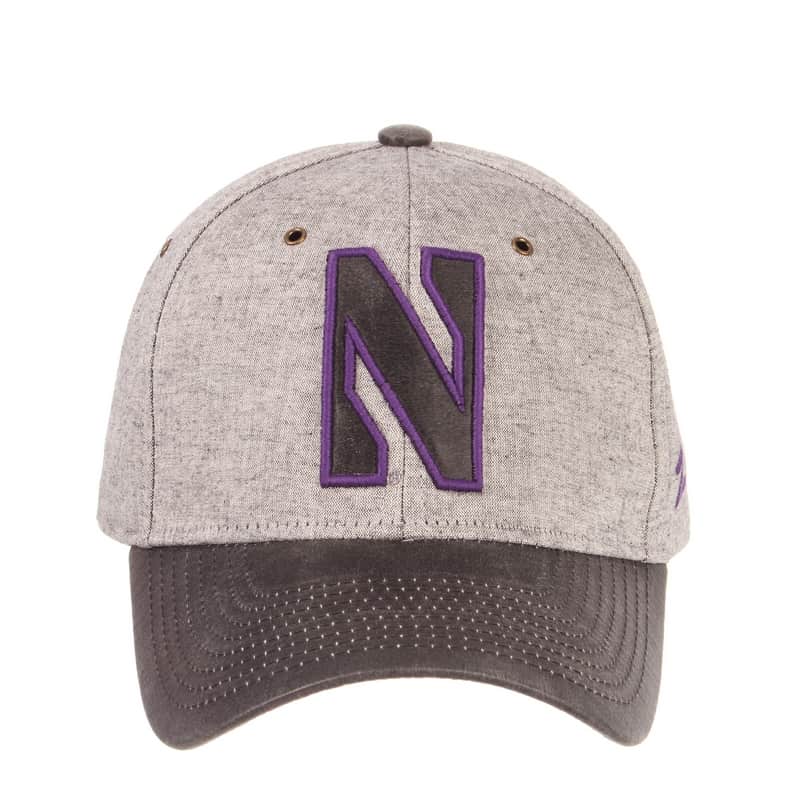 Northwestern University Wildcats Zephyr Constructed Adjustable Grey Cotton Hat with Synthetic Leather Visor And Stylized N Applique Design