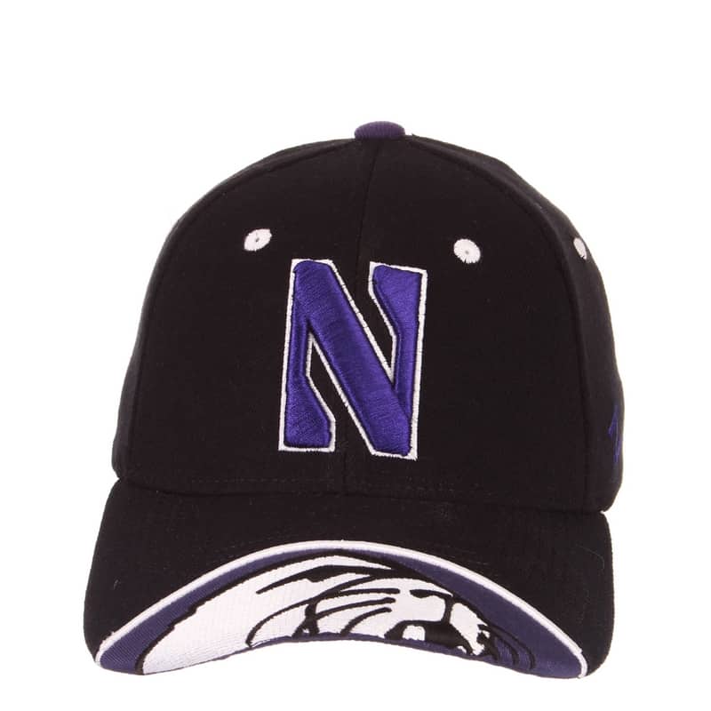 Northwestern University Wildcats Zephyr Constructed Flex Fit Black Hat with Stylized N Design with Embroidered Visor