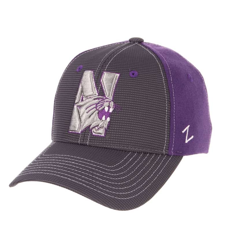 Northwestern University Wildcats Zephyr Constructed Flex Fit Charcoal/Purple Hat with Tonal N-Cat Design quantity