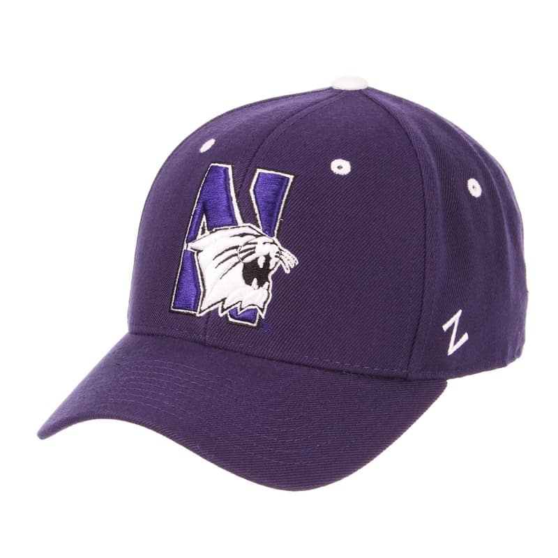 Northwestern University Wildcats Zephyr Dark Purple Fitted Hat with Stylized N-Cat Design