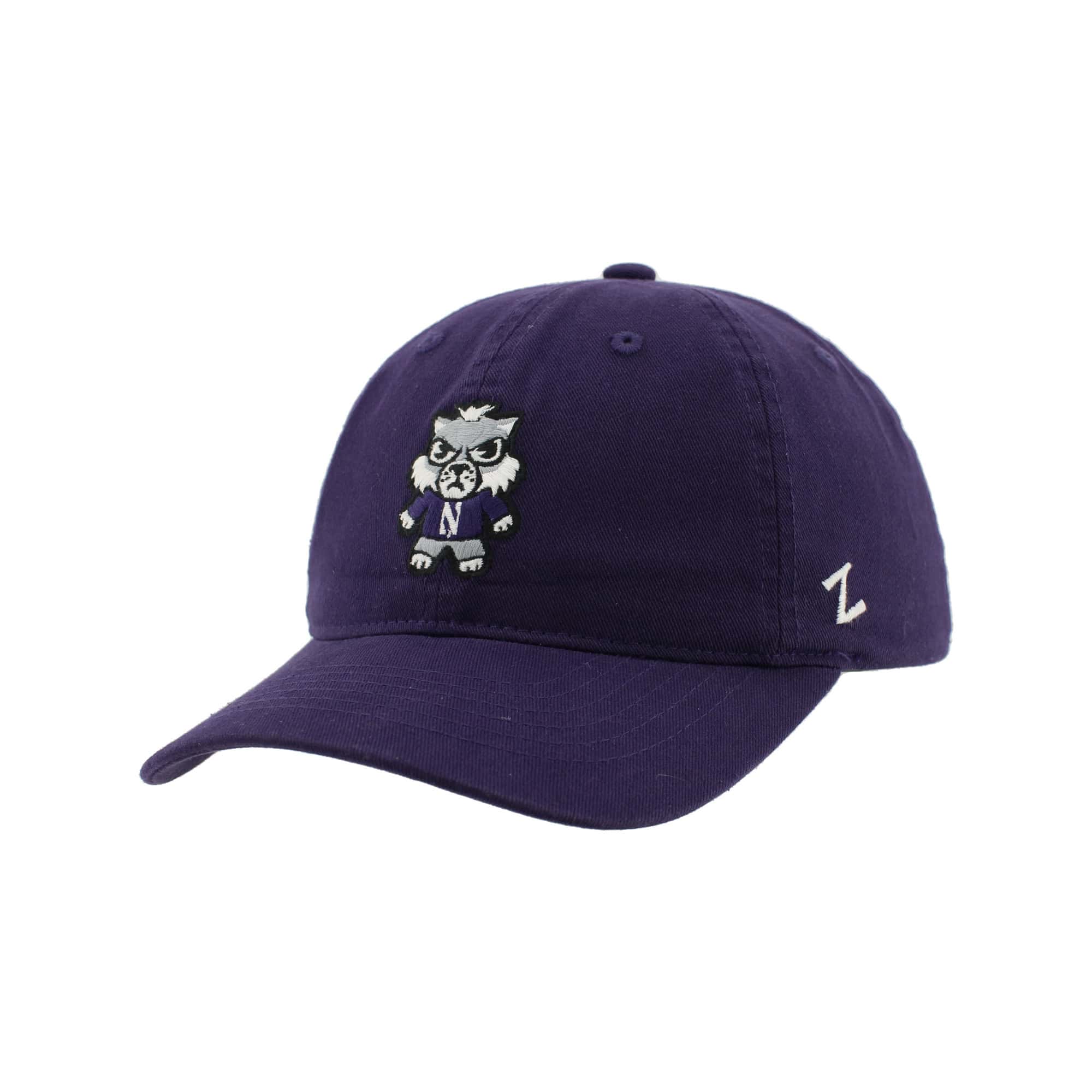 Northwestern University Wildcats Zephyr Unconstructed Adjustable Purple Hat with Tokyodachi Willie the Wildcat Design quantity