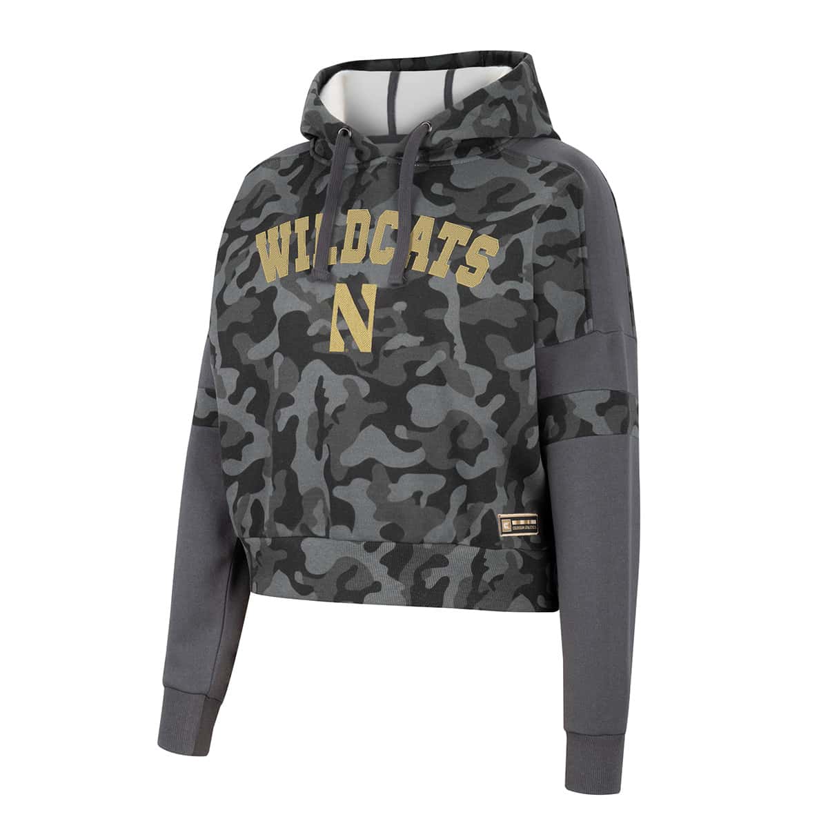 Northwestern University Wildcats Colosseum Black Camo/Charcoal Womens Airborne Meet & Greet Hoodie