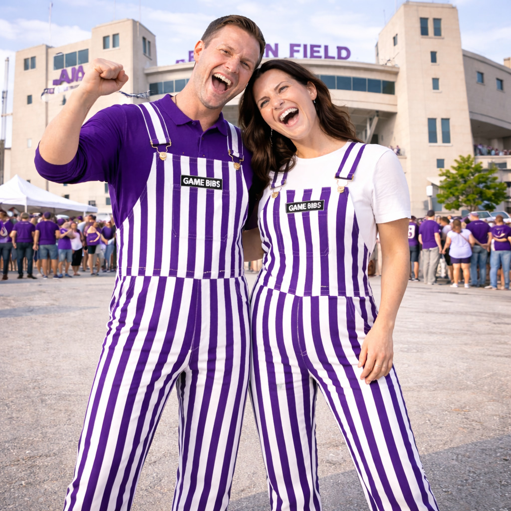 Purple/White Color Adult Game Bib Overalls