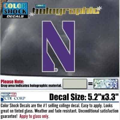 Northwestern University Wildcats Two Color Holographic Stylized N Design Outside Application Decal